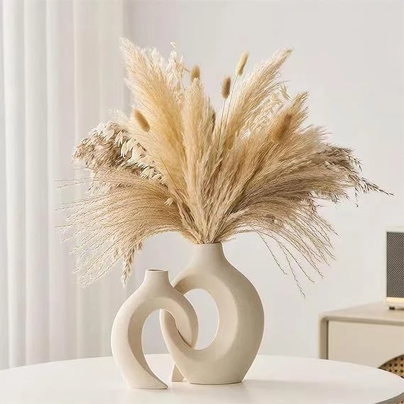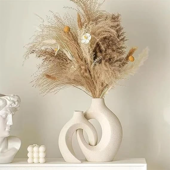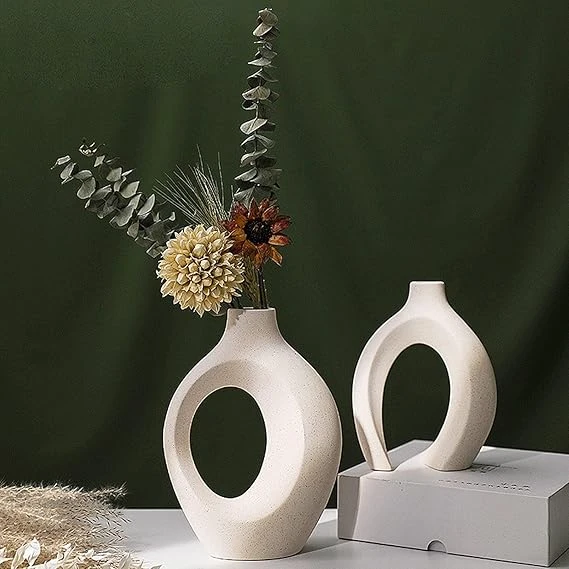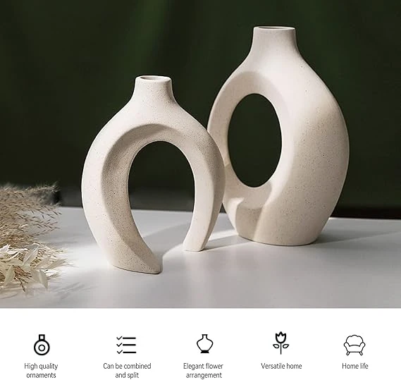 أضف لمسة من الأناقة والجمال إلى منزلك مع طقم الفازات السيراميك المودرن بتصميم تجريدي. يتميز هذا الطقم بتصميمه الفريد على شكل حلقة مفتوحة، مما يجعله مثاليًا لعشاق الديكور العصري والبسيط وللديكور بأسلوب النورديك أو الاسكندنافي.